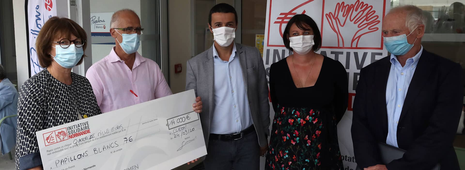 Le Fonds Caisse d’Epargne Normandie pour l’Initiative Solidaire équipe une salle Snoezelen (destinée à l’exploration sensorielle et à la détente) au Centre d’Activité de Jour Anna-Louise Clavel à Cléon. Maryse Vépierre, membre du directoire de la Caisse d’Epargne Normandie et Michel Champalbert, administrateur de la Société Locale d’Epargne de Rouen-Elbeuf-Yvetot ont remis un chèque de 14 000 € à Patrick Auber, Président de l’association des Papillons Blancs 76, le 24 septembre 2020.